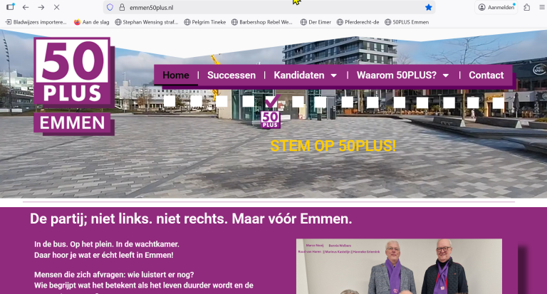 Op dit moment is lijsttrekker Marinus Kasteleijn met zijn team al weer druk in de weer om de aandacht te vestigen op de camagne van 50PLUS Emmen. Het thema van dit jaar is: niet links, niet rechts, stem met je hart.